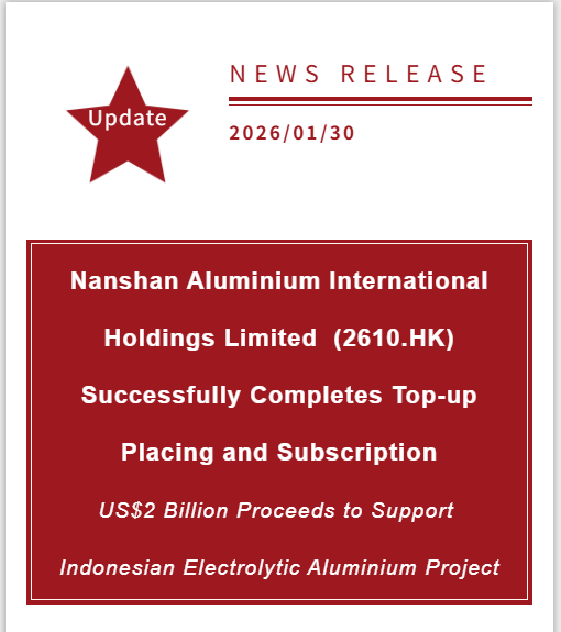Nanshan Aluminium International (2610.HK) Announces Proposed Top-up Placing: US$2 Billion Proceeds to Support Indonesian Electrolytic Aluminium Project